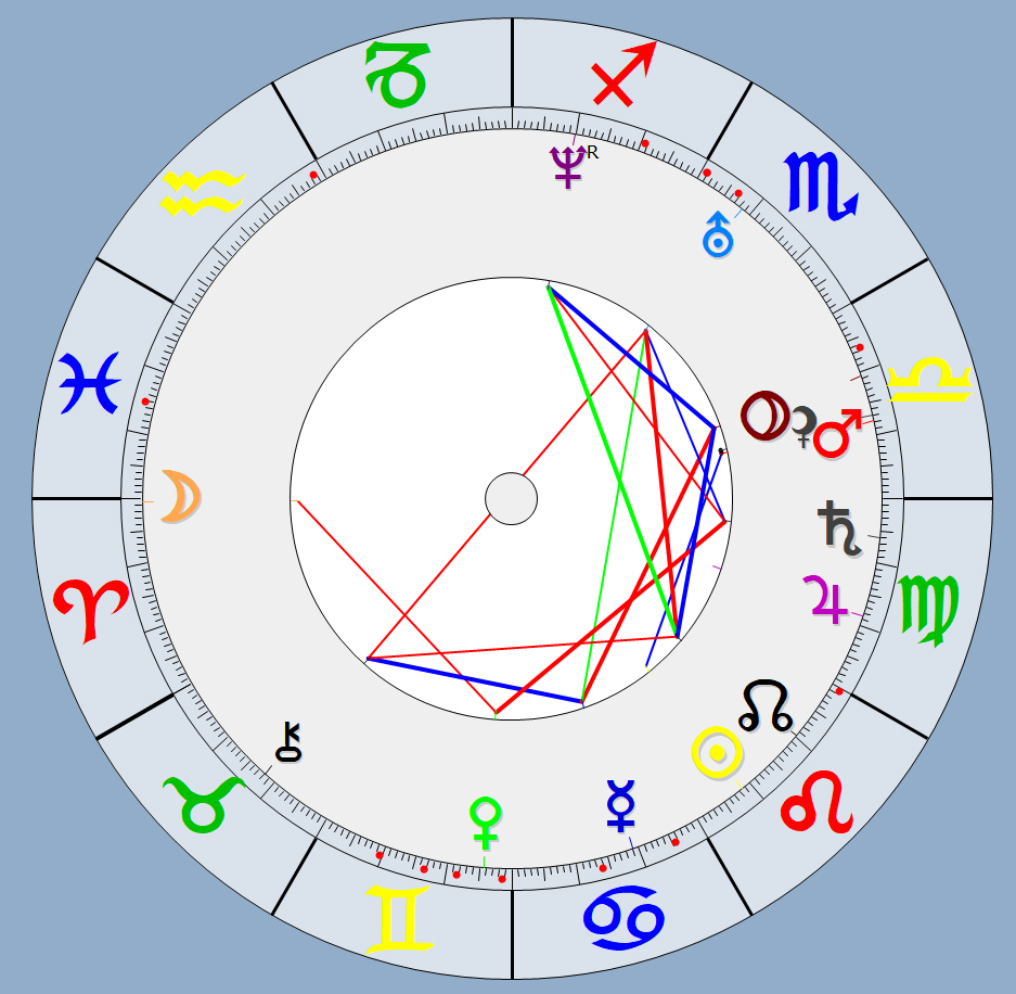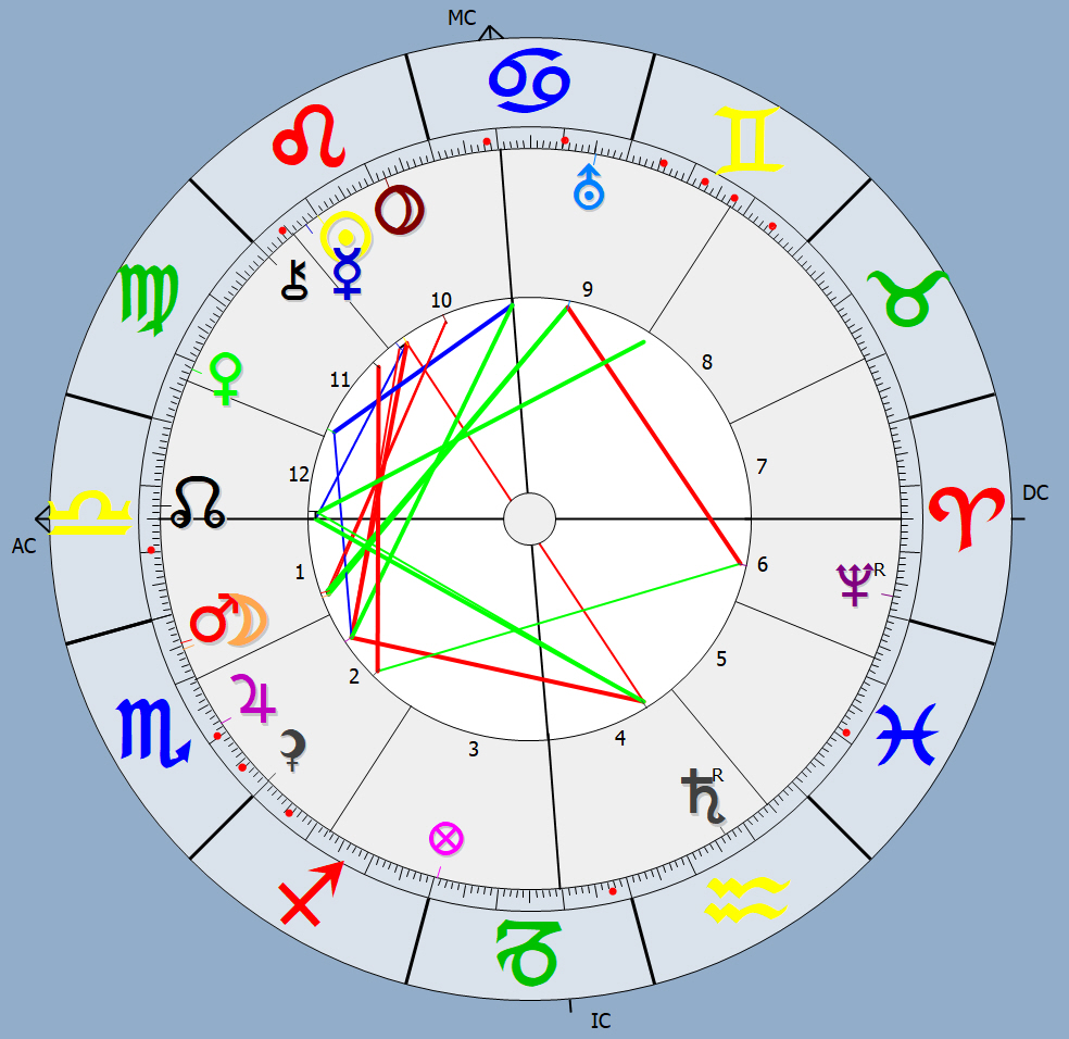 Das T-Quadrat zwischen Sonne-Jupiter-Saturn drückt die Spannung aus, diese Herausforderung der eigenen Verwandlung zum mächtigsten Zauberer über Macht- und Ohnmachtserfahrungen "siegreich" zu gestalten.