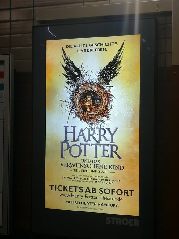 Kürzlich stand ich vor einem großen Werbeplakat für das Theaterstück "Harry Potter und das verwunschene Kind". Der 8.Teil der Romanserie erschien ja 2016 in Drehbuch-Form und wird nun auch in Deutschland auf einer Schauspiel-Bühne aufgeführt.
