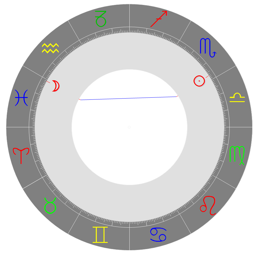 Graphik 1: Sonnen- und Mondposition zum Wochenbeginn am 26.10.2020 um 0:00 Uhr