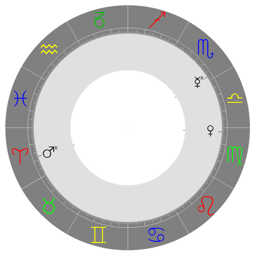 Graphik 2: Merkur-, Venus- und Marsposition zum Wochenabschluss am 1.11.2020 um 23:59 Uhr