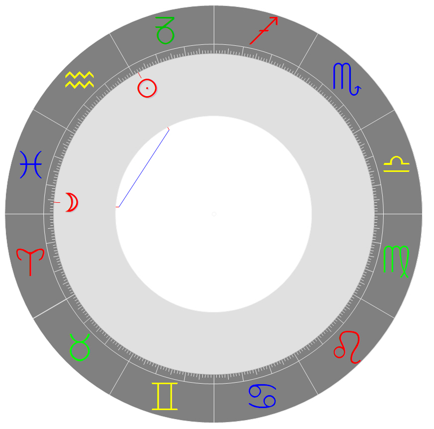 Graphik 1: Sonnen- und Mondposition zum Wochenbeginn am 11.1.2021 um 0:00 Uhr