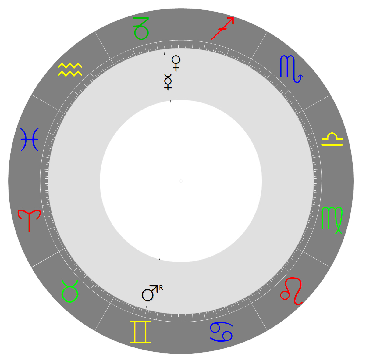 Graphik 1: Merkur-, Venus- und Marsposition zum Wochenbeginn am 12.12.2022 um 0:00 Uhr