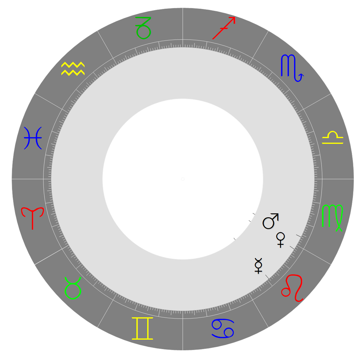 Graphik 2: Merkur-, Venus- und Marsposition zum Wochenabschluss am 23.7.2023 um 23:59 Uhr