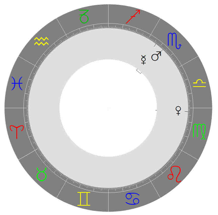 Graphik 1: Merkur-, Venus- und Marsposition zum Wochenbeginn am 6.11.2023 um 0:00 Uhr