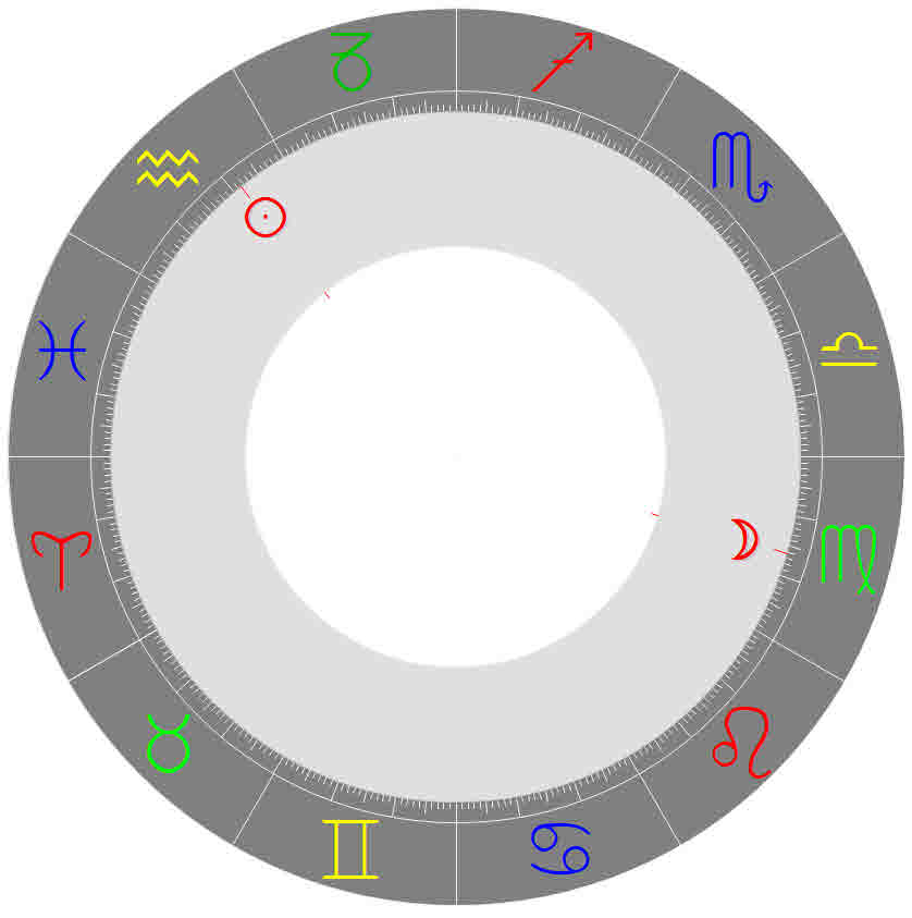 Graphik 1: Sonnen- und Mondposition zum Wochenbeginn am 29.1.2024 um 0:00 Uhr