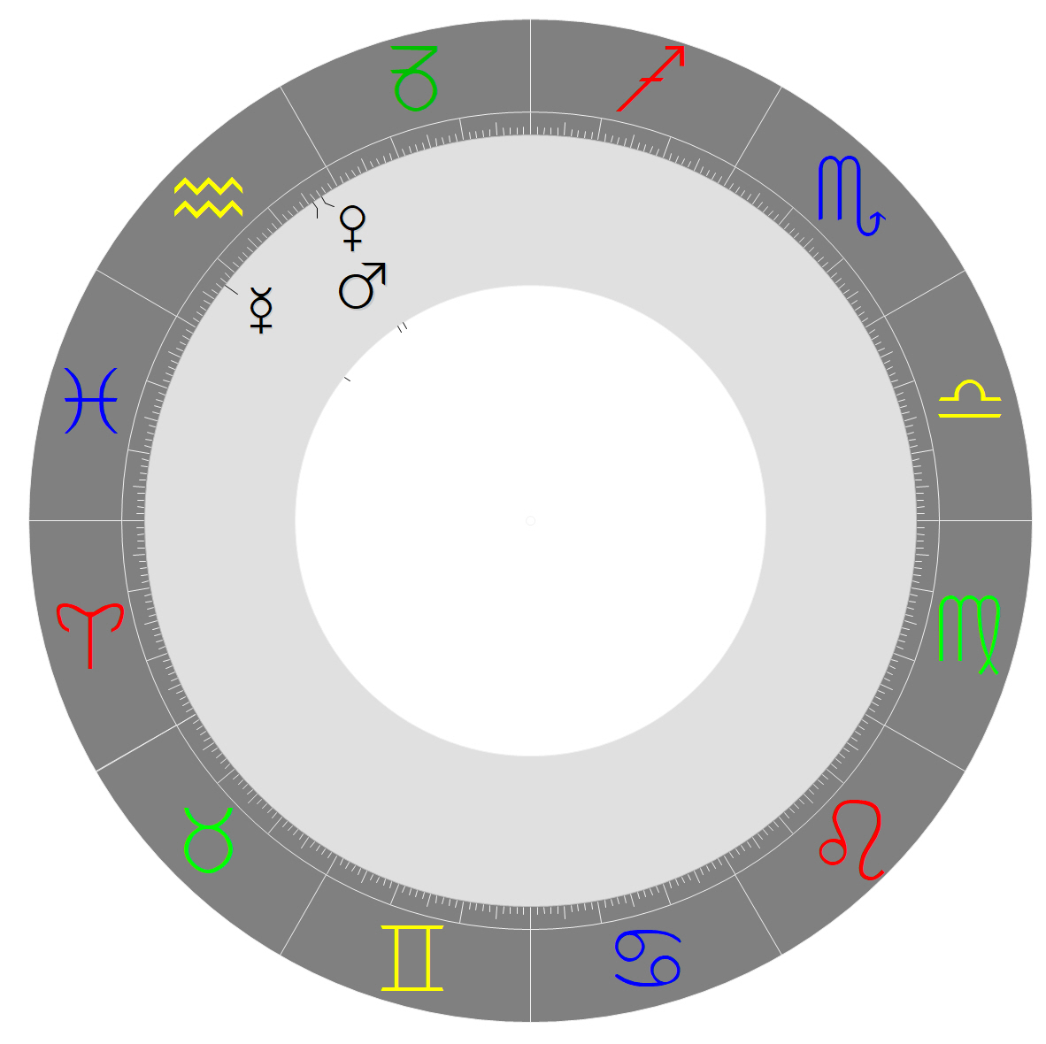 Graphik 1: Merkur-, Venus- und Marsposition zum Wochenbeginn am 19.2.2024 um 0:00 Uhr