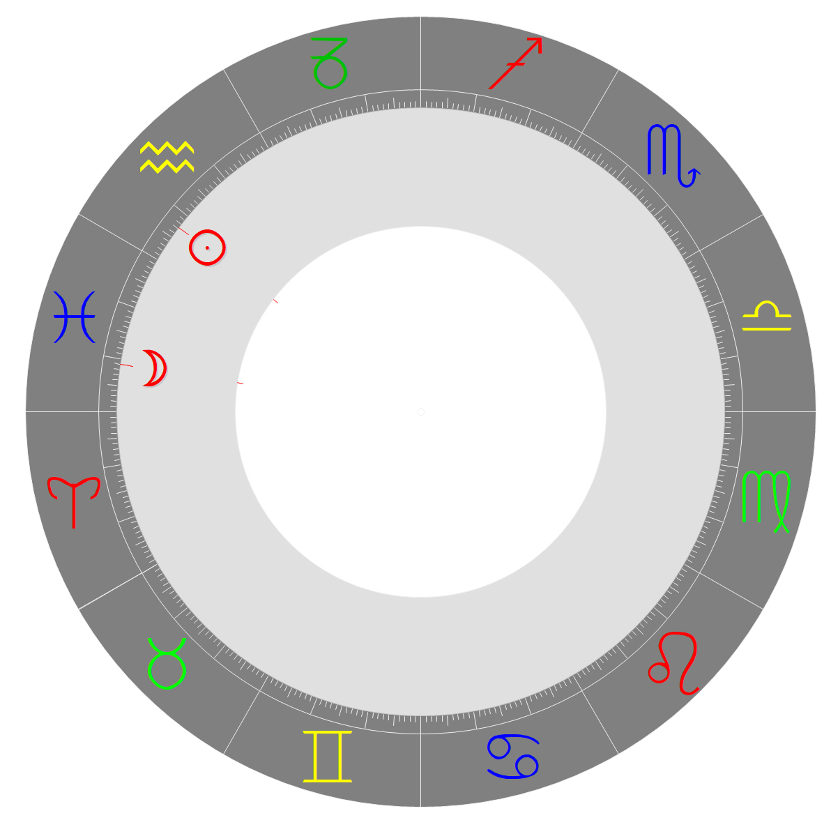 Graphik 1: Sonnen- und Mondposition zum Wochenbeginn am 19.2.2024 um 0:00 Uhr