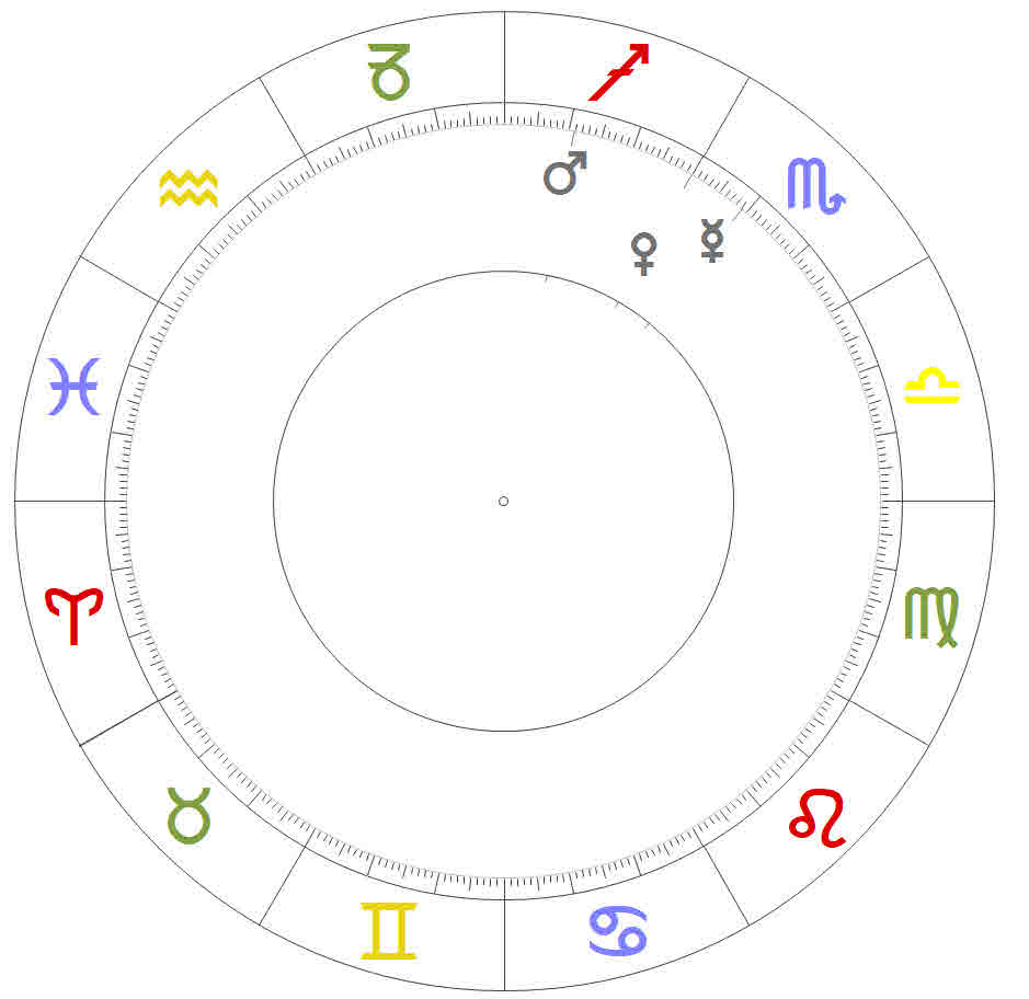 Graphik 1: Merkur-, Venus- und Marsposition zum Wochenbeginn am 24.11.2025 um 0:00 Uhr