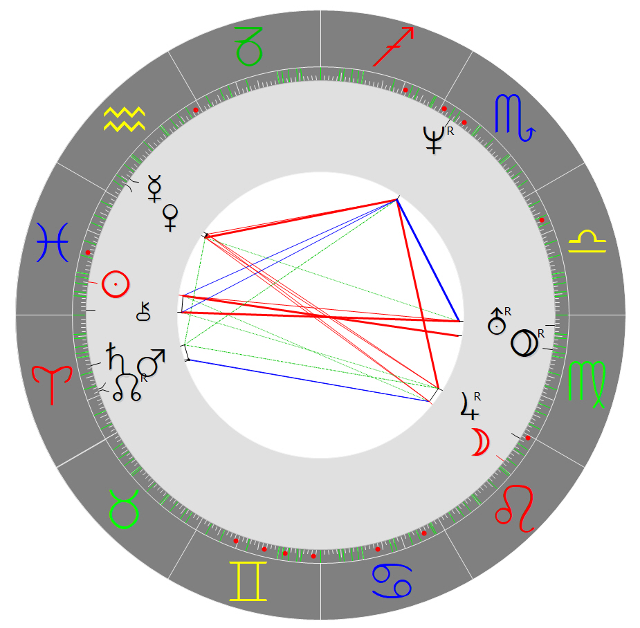 Wer könnte das sein ? Zu welcher Frau oder welchem Mann gehört dieses Horoskop ? Was hat dieser Mensch geschaffen, was bereitet dieser Person Freude oder Schwierigkeiten ? Einige Gedanken und Anregungen möchte ich heute hierzu geben und vielleicht haben Sie Lust sich selbst auf die Fährte zu begeben, wessen Geburtsmoment oben abgebildet ist. Wie populär oder nicht der Horoskopeigner ist, ob sie oder er noch lebt und gegebenenfalls wo wird heute noch nicht verraten...